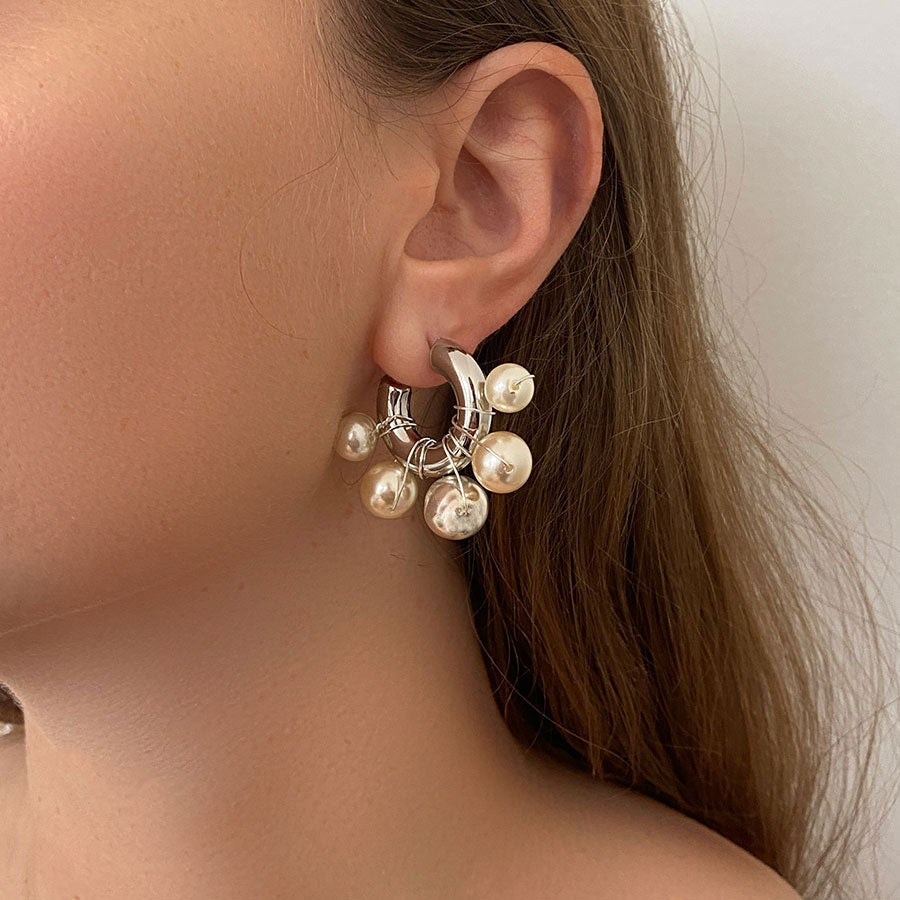 - Paire De Boucles D’Oreilles Avec Perles Nacrées Sur Anneaux Argentés